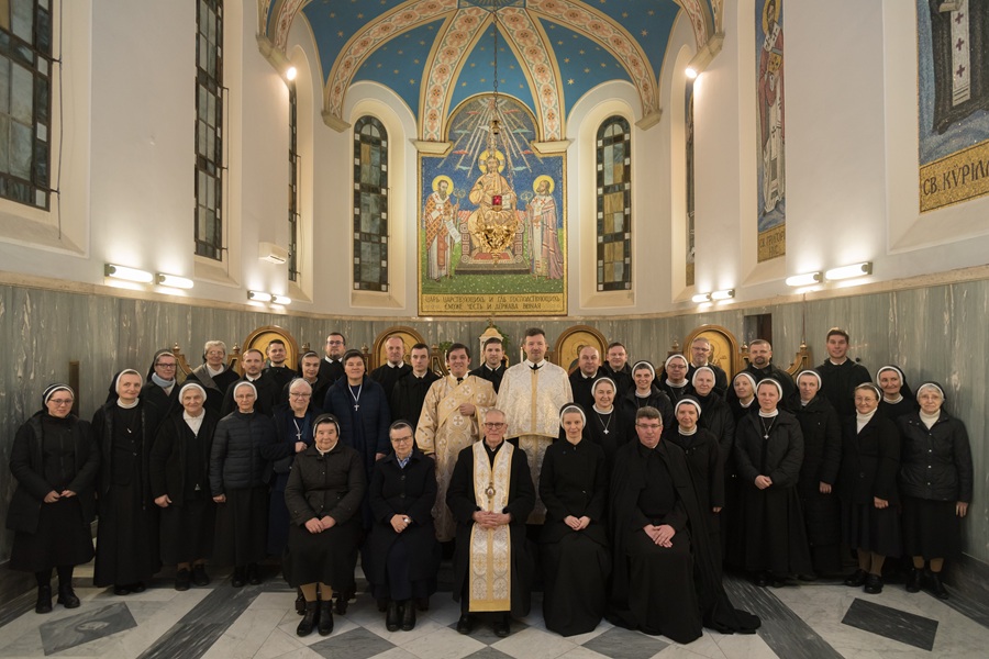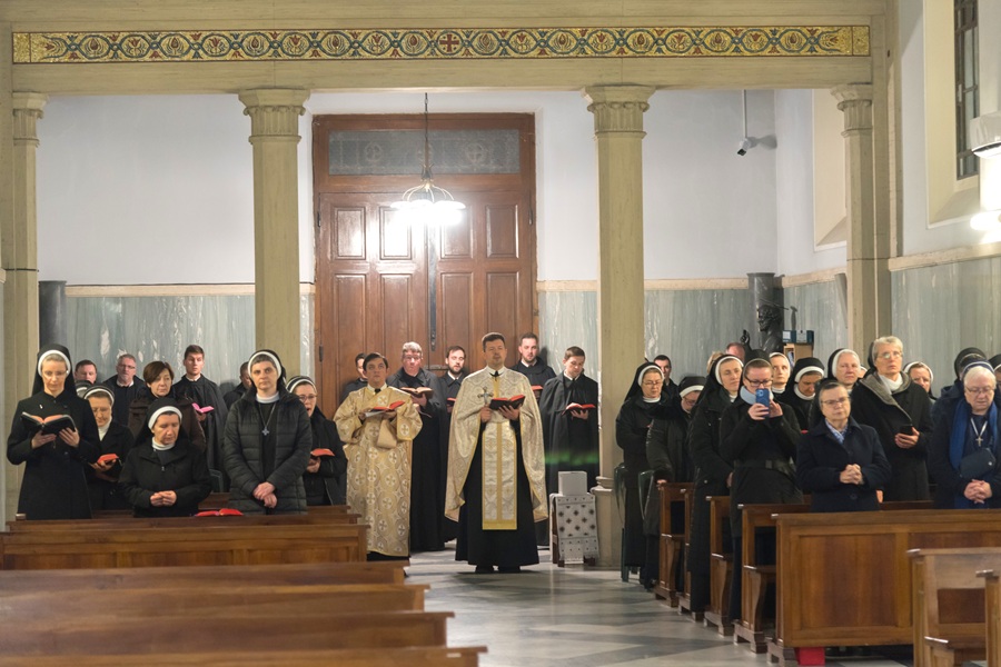 Ввечері попрощатися з Архиєреєм прийшли також богопосвячені особи, які об’єдналися у спільній молитві Вечірні з нагоди свята Стрітення Господнього. «Ми зібралися сьогодні разом, щоб подякувати Богові за Його силу, яка допомагає нам залишатися вірними», – звернувся владика Діонісій. Він заохотив слідувати в чернечому житті за прикладом Пресвятої Трійці – єдиної любові, світла, доброти та милосердя, щоб у різноманітності дарів творити єдність. «І тому Папа Івана Павло ІІ каже, що богопосвячене життя – це сліди Пресвятої Трійці в цьому світі. Ми є тими слідами, по яких мають йти інші», – зазначив промовець. За його словами, богопосвячені особи покликані бути знаком Божого Царства на землі, про що навчає ІІ Ватиканський собор. У цьому контексті чернецтво відзначається пророчим виміром, адже своїм життям вже звіщає те, що колись настане. На завершення владика Діонісій заохотив богопосвячених осіб просити ласку очищення від Бога, просвічуючись світлом Святого Духа.