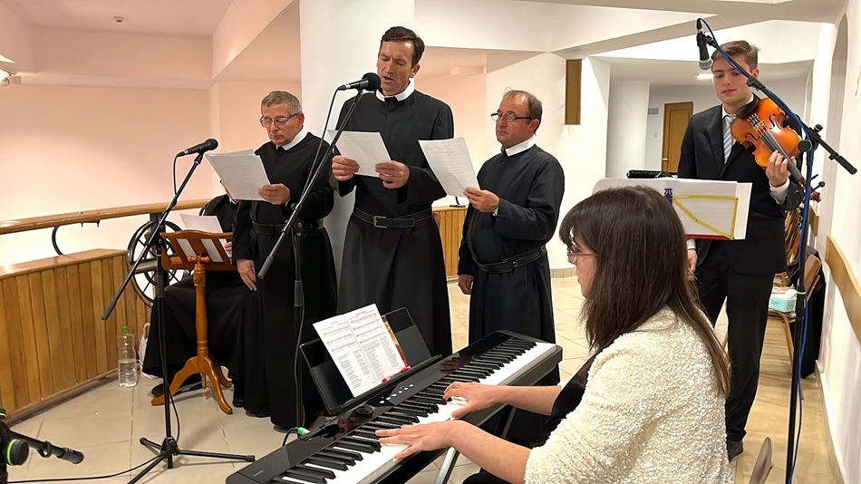 Промови чергувалися з виконанням творів від гурту сім’ї Опреану «ThreeO» та ченців Провінції Святих Петра і Павла. Учасники музичних виступів створили живу атмосферу емоційної глибини, відтворюючи вибрані перлини сакральної музики.