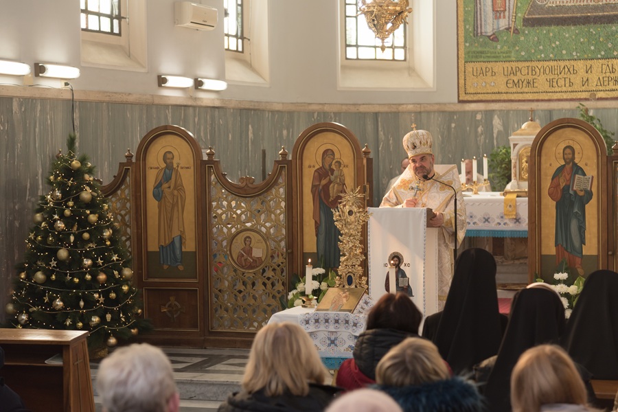 У своїй гомілії владика Григорій роздумував над значенням Нового року в житті християн. Він звернув увагу на побажання, які люди висловлюють одне одному у цей період, запросивши призадуматися, чи ці побажання співпадають із Божою волею та Його планом для людини. «Якщо ми бажаємо дізнатися, як би сам Господь нас сьогодні поблагословив і що нам би побажав, то треба відкрити Святе Письмо і спробувати знайти в Божому слові відповідь на це запитання», – порадив Архиєрей. Він вказав на уривок із Книги Чисел, у якому міститься благословення Аарона: «Нехай Господь благословить тебе і охороняє тебе! Нехай Господь світить обличчям своїм до тебе та милує тебе! Нехай Господь оберне обличчя своє до тебе і дасть тобі мир!» (Чис. 6, 24-26). Зокрема проповідник вказав на важливість Божого світла, «яке освітлює все навколо», потребу не відвертати свого обличчя від Бога та від ближніх, а також на бажання миру, який так необхідний зараз для України, але також стосується й людського серця та взаємин із ближніми. За його словами, мир є передовсім Божим даром. Натомість протилежністю миру в серці є страх і неспокій, які вказують на недовіру до Бога. «Просімо дару Божого миру для нас, наших родин, нашого народу, щоб цей мир не просто був присутній, а запанував у наших серцях», – побажав проповідник. На завершення він також закликав просити в молитві, за посередництвом святого Василія Великого, миру для України, «щоб новий рік був мирним роком для всіх».