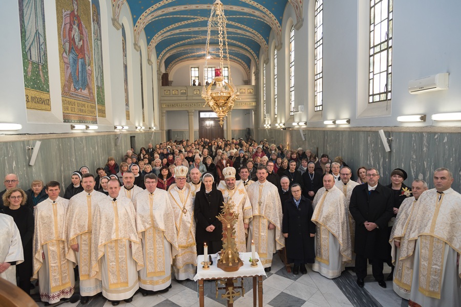 З Архиєреєм співслужили владика Діонісій Ляхович, ЧСВВ, вислужений екзарх в Італії; о. Роберт Лисейко, ЧСВВ, Протоархимандрит Василіянського Чину, з ієромонахами Головної Управи; о. Олександр Сапунко, працівник Дикастерії для Східних Церков; о. Ігор Галей, канцлер Апостольського екзархату в Італії; ієромонахи-василіяни, зокрема, з Папської Української колегії святого Йосафата на чолі з ректором о. Бернардом Підгірним, ЧСВВ. У спільній молитві єдналися богопосвячені особи: мати Еммануїла Вішка, Генеральна настоятелька Сестер Чину Святого Василія Великого, з монахинями Ордену, сестра Софія Лебедович, Генеральна настоятелька Згромадження Сестер Служебниць НДМ, з черницями Згромадження; п. Андрій Юраш, посол України при Святому Престолі; Сіґіта Маслаускайте-Мажилієне, пані-посол Литовської Республіки при Святому Престолі, а також вірні та гості, які прибули розділити радість свята.